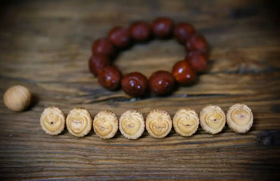 猴头手串,顾名思义,其灵感来源于猴头核桃的天然形态。这种手串以其形似猴头的独特造型和细腻的纹理,赢得了众多文玩爱好者的青睐。每一颗猴头核桃都蕴含着大自然的鬼斧神工,它们经过岁月的洗礼,形成了各具特色的外观。无论是盘玩还是佩戴,猴头手串都能散发出一种独特的韵味,让人爱不释手。那么,猴头手串为何能够成为文玩界的宠儿呢?这背后不仅仅是因为其独特的造型和纹理,更在于它所承载的文化内涵和收藏价值。在文玩爱好者的眼中,猴头手串不仅仅是一件装饰品,更是一种精神的寄托和品味的象征。