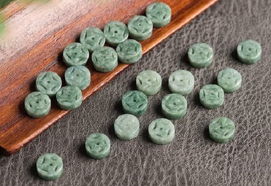 再看光泽,真翡翠表面光泽自然并且具有油润感,假翡翠的光泽比较暗淡和粗糙。对于铜钱玉吊坠来说,真的玉石表面会呈现出独特的光泽,如翡翠主要为玻璃光泽,软玉呈油脂光泽。同时,可以用肉眼观察光泽,有经验的人在光线照射下转动宝石反射出的光的强弱度,就可以根据不同的光泽,初步区分翡翠、软玉与蛇纹石玉等。