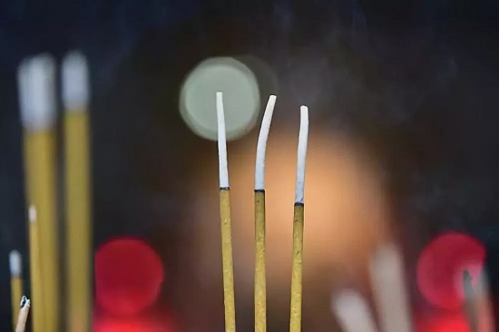 平心静气,敬对祖师。手持三炷香。如果香头有火苗,不可用口吹灭,轻轻扇灭或者摇灭即可。