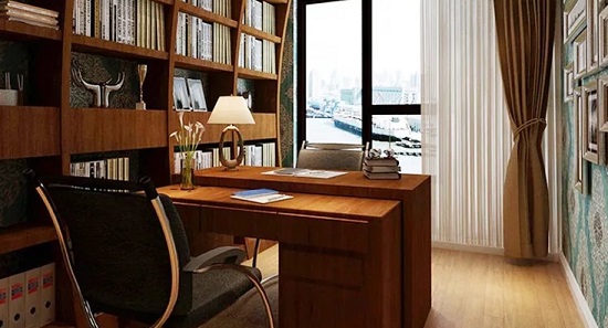 书房风水好可以带动家人的工作与事业运。书房中的书桌最好背靠实体墙,面朝门窗,代表家中男性在工作上业务能力强,做事得心应手,事业上有贵人相助,发展空间大,财运好。
