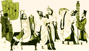 糊涂的怀王听信谗言,疏远屈原,亲近奸佞之臣,屡受秦使张仪的欺骗。从此,楚国内外交困,渐渐地衰弱下来。