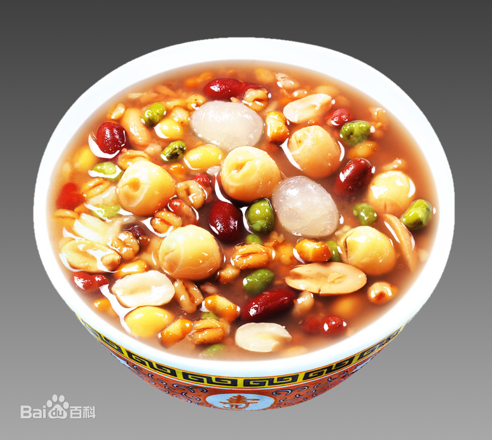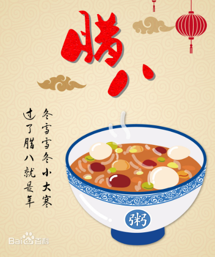 腊八粥,又称“七宝五味粥”、“佛粥”、“大家饭”等,是一种由多样食材熬制而成的粥。腊八粥的最早文字记载在宋代。我国喝腊八粥的历史,已有一千年以上了。每逢腊八这天,不论是朝廷官府、寺院还是黎民百姓家都要做腊八粥。到了清朝,喝腊八粥的风俗更是盛行。