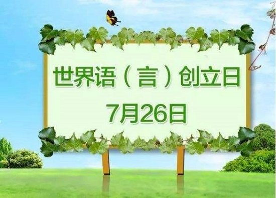 世界语(Esperanto)是由波兰眼科医生柴门霍夫博士创造的一种国际辅助语言。世界语以印语系中几种主要语言为基础,在语音、词汇、语法上加以改进,设28个音位,相应地用28个字母表示,读音和拼写完全有规则,较易于学习和掌握。1887年7月26日,柴门霍夫自费出版了《世界语第一书》。此后,人们就把7月26日作为世界语的创立日。