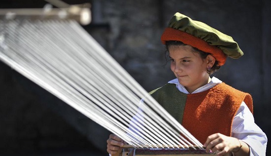 9月5日,在瑞士古镇萨永,街头艺人身着中世纪服饰参加当地举办的中世纪节。