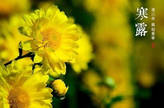 《月令七十二候集解》说:“九月节,露气寒冷,将凝结也。”此时气温较“白露”时更低,露水更多,日带寒意,故名“寒露”。