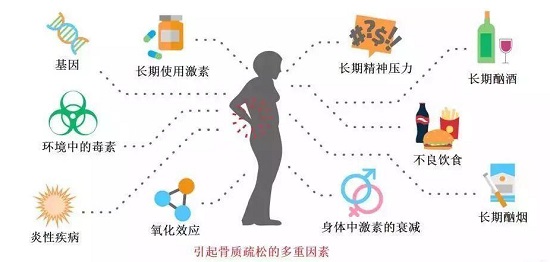 专家们提醒,任何人都可能患上骨质疏松症,骨质疏松症常常可引发其他严重的并发症。导致骨质疏松症的原因包括:遗传因素,营养失衡,活动量不足,长期酗酒、吸烟和嗜食含咖啡因的食品,以及长期服用抗生素、类固醇激素、利尿剂等药物。