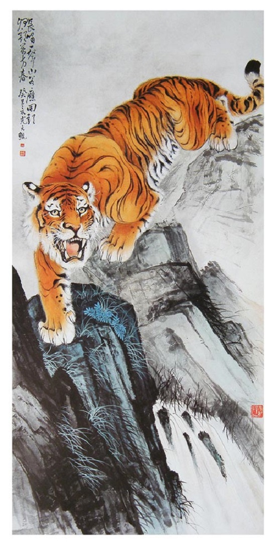 因此,在客厅内悬挂老虎画,画中老虎应为上山虎样式,因为老虎上山则遨游三山五岳,寓意平安无事,步步登高,应该挂在客厅内侧墙上。
