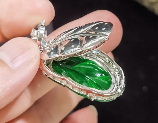 明白了这三个原因,就会知道,买翡翠,尽量买不镶嵌的裸石,当然,这也意味着更高的预算。如果一定要镶嵌的,最好是自己买裸石,自己镶嵌(我们工作室就有专业的镶嵌设计师),这样即安全,性价比又高。如果遇不到合适的裸石,那也要尽量买背后有打开盖子的镶嵌款式,买的时候,看看后盖的情况,也能降低被坑的风险。