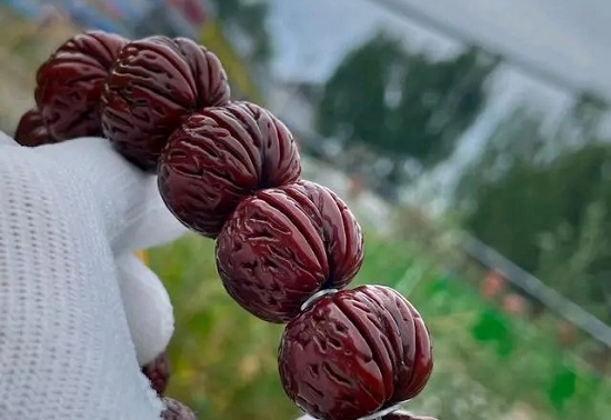 收到桃核手串第一步一定要注意,是否有糠籽、花皮、色差的天然瑕疵。有天然瑕疵的籽是无法通过盘玩变得红润透亮的,并且也要注意手里的桃核规整度是否合格,是否具备让我们耗费时间精力去长期把玩的基本条件。