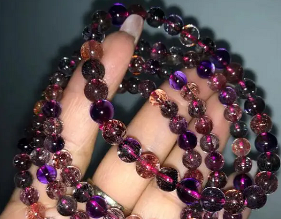 超七水晶是由七种矿石融合而成的,包括白水晶、烟水晶、紫水晶、金红石、针铁矿、纤铁矿和黄磷矿。这种特殊的成分使得超七水晶在生长过程中,晶体内出现了黑色、红色和紫色的发丝包裹体。据说这三种颜色分别对应着海底轮、生殖轮和眉心轮,它们是人体最初和最后的轮脉。