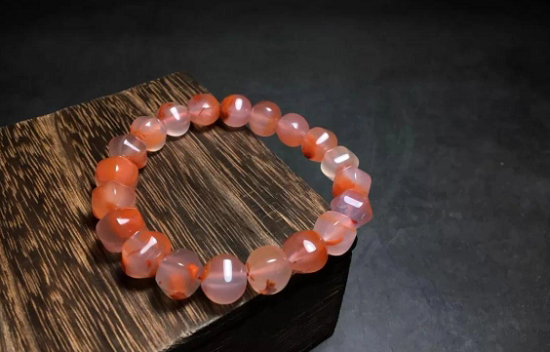 而南红红白料,则是一种界限分明的美。它的白色部分色彩更为浓郁,不同于冻料的半透明,红白料的白色部分通透性较差,是不透明的。这种明显的对比,让南红红白料在视觉上更为突出,给人以强烈的视觉冲击力。