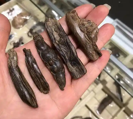 在盘玩方面,沉香与其他文玩有着本质区别。许多人认为文玩就得使劲盘玩,但沉香主要价值在于其独特的香味,而非把玩后的外观变化。沉香质地较软,过度搓揉不仅会破坏珠子的表面,还可能影响其内部结构,甚至导致打孔处出现掉皮现象。有些不良商家为了销售而鼓吹沉香能盘玩出好效果,实则是误导消费者。因此,把玩沉香时,只需轻轻欣赏其纹理,静静品味其香气即可。