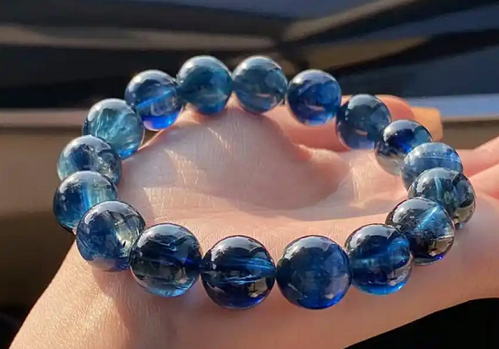 蓝晶石的主要特征是其淡蓝色,通常是淡蓝、淡蓝绿或淡蓝紫色。这种淡蓝色可以呈现出各种浓淡不一的色调。蓝晶石常常具有白色或乳白色的纹理、条纹或斑点,这些纹理交织在一起,形成独特的图案,使其外观精致而美丽。能量和灵性:代表了沉着和勇敢,可提高沟通能力和逻辑思维能力等,协调身心,促进冥想。重点是:一定要是颜色蓝,色泽艳丽的,饱和度高的,透明度高的,为最好。