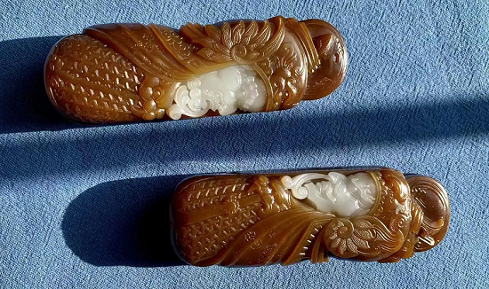 接下来,我们谈谈和田玉糖料的认知要素。首先,观察颜色是关键。真正的和田玉糖料颜色通常比较柔和,不会过于鲜艳或刺眼。颜色由浅到深的渐变,且颜色之间逐渐过渡,不会出现明显的色块或线条。相比之下,仿品往往颜色过于浓艳或死板,缺乏自然感。其次,检查质地也很重要。