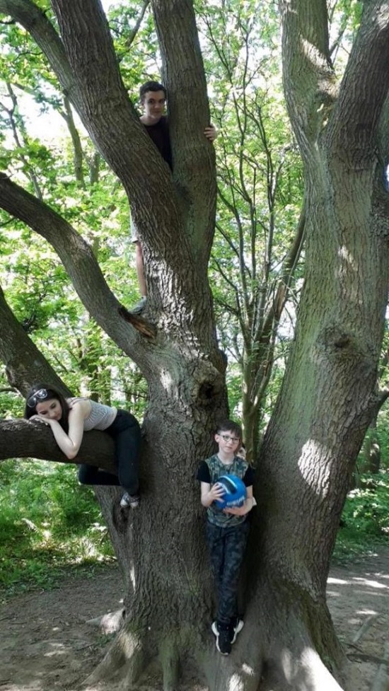 据悉,这位名叫劳拉·沃森的39岁妈妈假日带着孩子去普莱西森林郊野公园野餐,大儿子和女儿都爬上一颗大树,只有小儿子拜林(Byrin)独自站在树下,她确定旁边都没有其他的路人,镜头前只有家人后,才按下相机的快门键,记录下一家人游玩的快乐时光。
