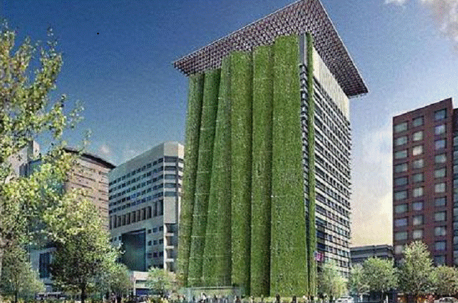 从二十世纪后期还是,环保这一话题就成为了世界的主旋律,全世界开始提倡环保热爱绿色,很显然这座市政大厦就是一个很合格的环保主义者。几条绿色草坪从大厦顶端直接覆盖到了地面,让整个大厦的正面完全成为了一片草地,这种矫枉过正的恶趣味,实在不知道设计者的思路是什么,他想把这里假装成一棵树吗?
