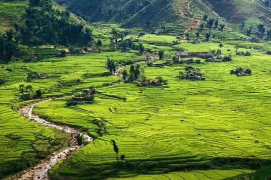 越南北部的沙巴地区,梯田层层。这里的居民靠种水稻和向游客贩卖小商品为生。当地山民把村庄妆点得五彩斑斓,迎接那些为此处秀丽的美景慕名而来的游客。游客们通常会请当地山民为向导进山徒步或野营,途中也会向他们购买些小玩意作为纪念品。