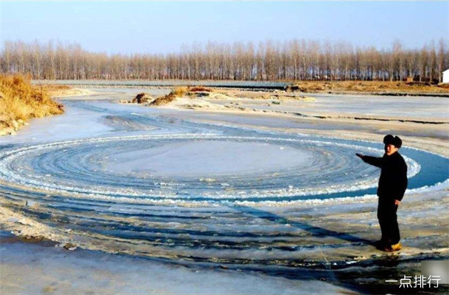据悉,“冰圈”现象在全国都是非常罕见的,通常也只会发生在北极、斯堪的纳维亚、加拿大等地区。而关于神秘冰圈形成的原因,目前流传着好几种说法。说法一:在河面的拐角处,加速流动的水会产生一种被称为“旋转剪切”的力量,将冰块切断,然后冰块缓慢旋转。被切断的冰块和周围的冰块相互摩擦,于是最终形成了一个正圆形。说法二:有人认为冰圈的形成与地下热能或地下天然气有关。说法三:有人脑洞大开,认为冰圈或许根本不是自然现象,而是像麦田怪圈一样是外星生命的“杰作”。