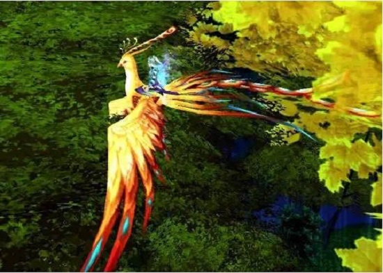 在中国神话传说中,凤凰生长于南方丹穴山,五色斑斓,能歌善舞,能预兆天下太平。
