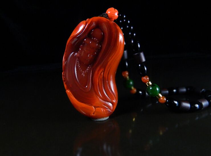 南红的“质厚温润”是指它结构半透明到微透明的浑厚质感,以及它的光泽带给人们的视觉舒适感。这里说的光泽是南红对光的反射能力。南红的质地不同,显现出的光泽也不同。一般来说质密则光感强,质粗则光感弱。南红玛瑙的光泽带有很强的油脂感,看上去很柔和,很舒服,不强不弱,给人以滋润感。这正是古人眼里上等美玉才有的“质厚温润”。“体如凝脂”这四字形象的描述了盘完南红时的手感,它摸上去,油油糯糯,贴身佩戴或长时间盘玩后,放置一会儿再次盘完时发现入手依然尚存余温,宛如有生命一般。这种种与人亲近的通灵之性,往往使人痴迷,甚至被披上神奇的梦幻色彩。