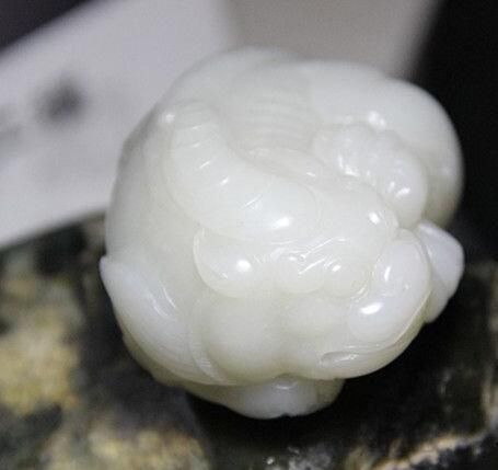 三、籽料有皮毛孔和皮色,山料没有。这个简单一说!鹅卵石状的玉不论是天然状态上还是雕刻的多样选择上,都比山料显得更加具有原生态的感觉。这也是为何籽料带皮色一直被拿来说事。