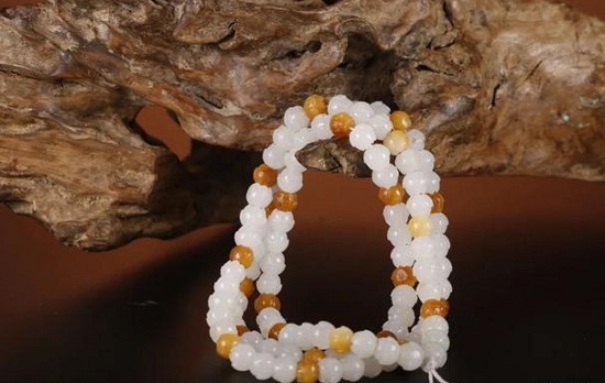 虽然压襟的题材有很多,但还是用手串、念珠等做成的压襟最有柔美绰约的风情,也最受女子喜爱。