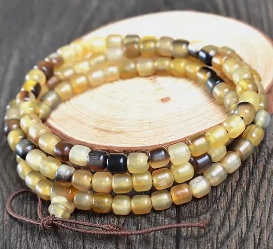 牛角本身是一种珍贵的中药材 《据草纲目》中记载:牛角具有清热解毒,滋阴凉血,降血压、去风湿等功效,纯天然牛角保健手链做工精细,表面光滑,并且结实耐用.可以说千年不变型万年不变色.而牛角作为一种绿色环保的天然材质,平常可以用来按压手腕、疏通脉络。而且经常佩戴更是起到自动保健的效果,也可邪保平安,同时又是一种很时尚的手珠饰品,一物多用,超值享受。每三次,戴着手链,轻轻的上下甩动手臂10-20次。坚持一段时间,对长期使用鼠标和键盘的手腕的酸痛,打通脉络,有神奇的疗效!传说:牛角制品能避邪,镇宅,保平安牛角最怕干燥易裂,也怕风吹日晒,最好不要碰水;最合适当佛珠或配件,人体的油脂和汗液是它最好的保养液,佛珠盘个两三年牛角就会更稳定富有光泽;如长期没有佩戴最好抺些油并用密封袋收藏牛角经过盘玩基本不会变色黑牛角珠子和棕色牛角珠子始终是黑色和棕红色,白牛角到后期会显浅浅的黄白色,牛角的密度普遍不大,珠子经过把玩,表面形成浅浅的包浆,手感会越来越润,光泽度会比较好,平时佩戴和不玩的时候都尽量避风,以免牛角珠子内部水分迅速丧失造成开裂牛角本身是一种珍贵的中药材。