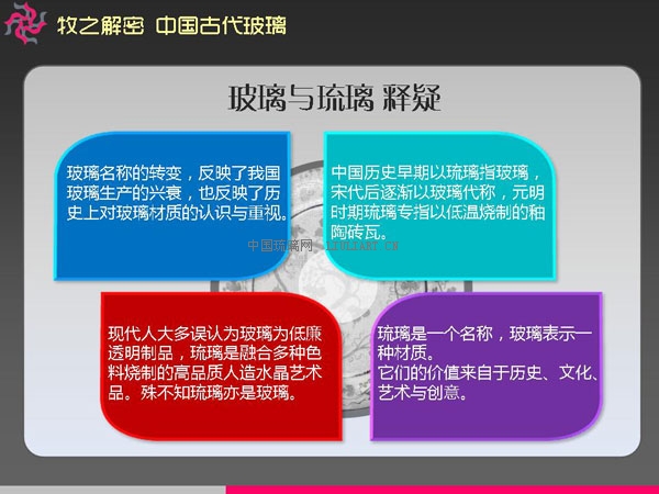 国人对于古代玻璃的研究只有短短数十年,近半个世纪以来的考古发掘及民间收藏爱好者们的关注,使这块领域逐渐被大家认知。为了更好地推广琉璃文化,牧之在创办“中国琉璃网”之后,也积极参与古琉璃的收藏、整理、研究工作。数年来亲眼见证先周至民国的数万件古代琉璃之后。愿以实践经历与大家分享一些关于中国古琉璃的常识,为传承琉璃艺术尽一份薄力。