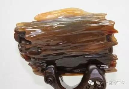而这类树化玉,一般会通过打磨雕琢成独特的造型博人眼球,也很适合喷砂加工的方式。不过「干货」的颜色会随着时间流逝而逐渐混浊,所以收藏价值一般。