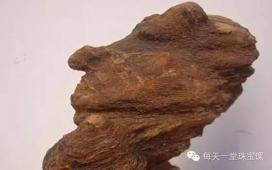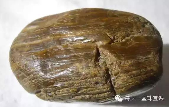 水冲料树化玉:并非被埋于深层地下,而是处于地面,被二氧化硅沁入也不多,谈不上种水,形状也很一般。因为不太具有收藏和观赏价值,现在市面上已经基本没有这类树化玉了。
