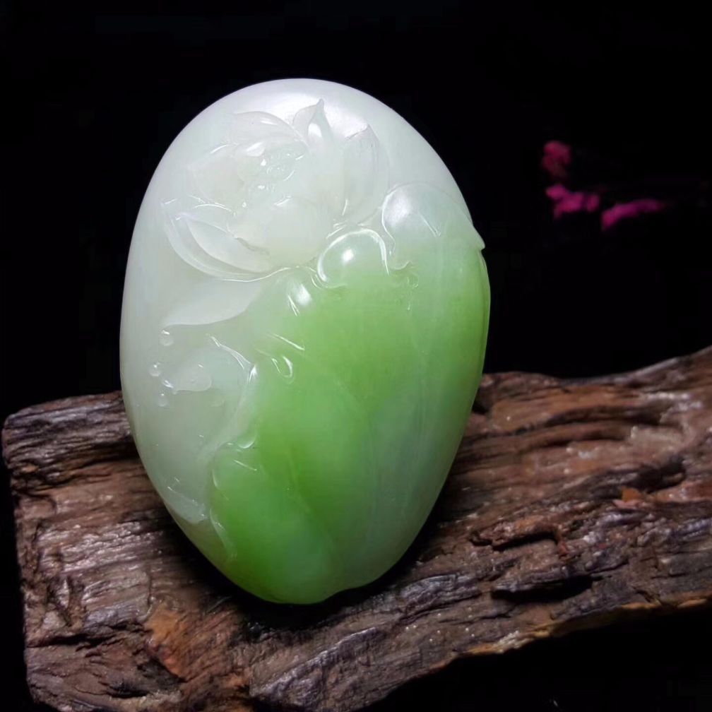 玩家在收藏青海翠青的时候要知道,就算是白翠分明的玉料,在两者颜色之间也是有过渡的,就像下图的这块天然青海翠青一样,如果玩家看颜色实在分辨不出来的话,那就根据青海翠青的玉质结构等等来分辨,收藏不能大意!