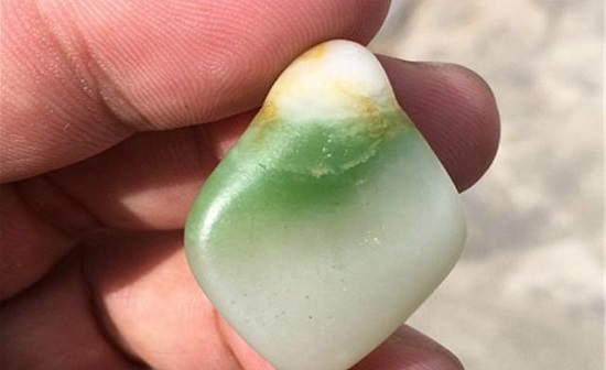 比如上图的翠色小原籽,可以看得出和田玉的温润细腻,而且颜色的过渡自然,由浅到深,不会那么的浓艳,玉色也不会那么干白,原石上多多少少的瑕疵是正常的,没有那么完美的料子。