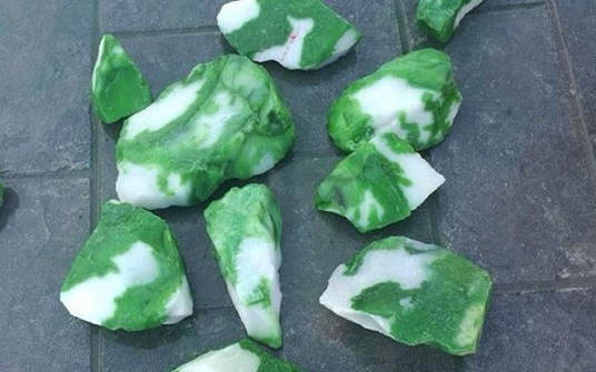 买料子的时候看见几块“青海翠”的原石,大家一起来分析一下,这种浓艳的颜色非常漂亮哦,如果有收藏到这种颜色物件的玉友可就中标了;有人做,自然也就市场,也就会有人上当,所以大家买玉的时候,不仅仅是翠青这一样要提防,每个玉种购买的时候都应该要有小心谨慎的态度。