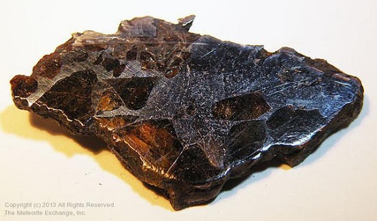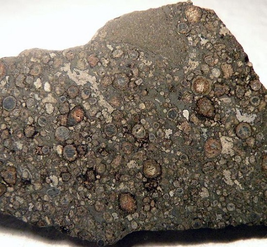 (1)、球粒陨石―约占陨石总量的84%,球粒陨石主要由橄榄石、辉石、斜长石、铁镍微颗粒以及少量其它矿物组成。球粒圆形,直径约1―2mm,矿物结晶粒度一般均<1mm,矿物颗粒杂乱无章地排列。按球粒成分分为顽火辉石球粒陨石、普通球粒陨石、含碳球粒陨石。普通球粒陨石含碳球粒陨石―非常稀少,含有氨基酸和其它有机质(1969年9月在澳大利亚的亚茂契逊镇坠落的含碳球粒陨石中,含有18种氨基酸、蛇纹石。)