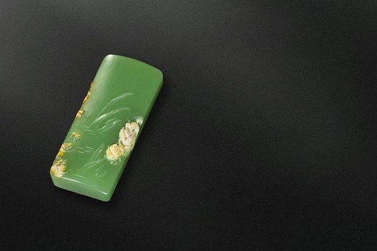 析木玉的顶级料子比较少见,顶级的析木玉的结构非常紧致,几乎能达到无结构的水平,因为与碧玉的颜色差不多,所以我们用碧玉里的鸭蛋青与之对比,因为鸭蛋青也是一种可以达到无结构的玉种之一,两者对比的结果是析木玉更加适合雕刻,颜色更加稳重。