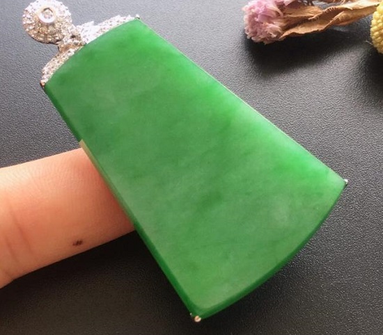 如下图所示是翡翠冰种,其晶状体颗粒状一样细致,人的肉眼不可见,构造紧度仅次玻璃种翡翠,外型与冰块临近,故称之为翡翠冰种。