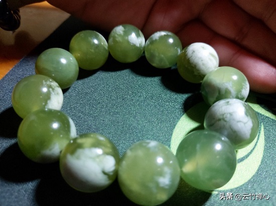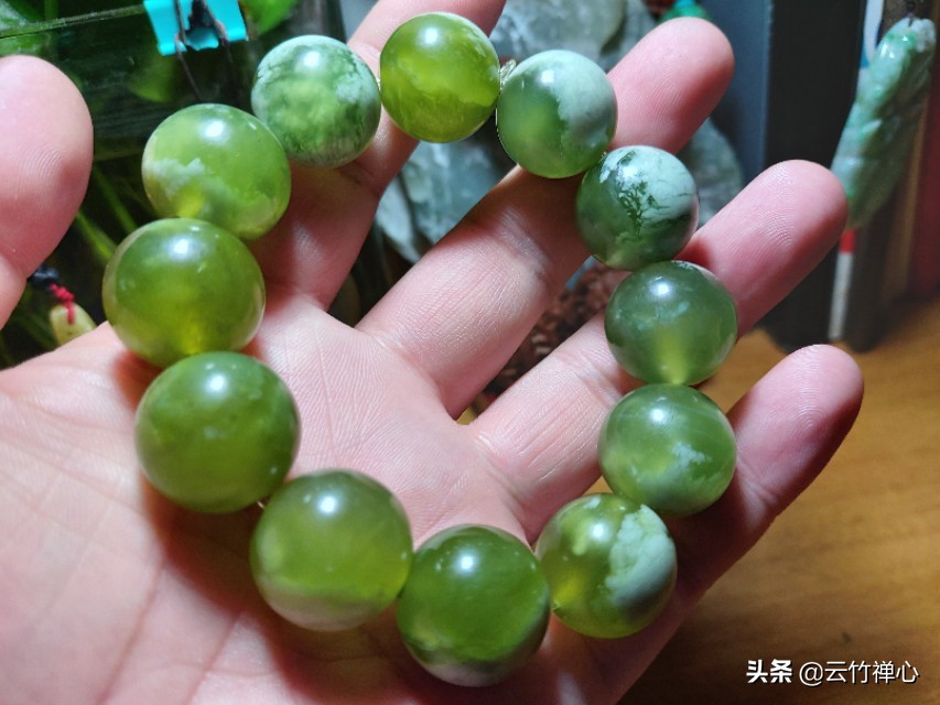 这几天空闲无意间想起来了,马上把手串拿出来盘了几天,却发现不愧是四大名玉之一辽宁岫岩的岫玉。小编是越盘越喜欢,手串也越来越漂亮。迫不及待的和玉友们来分享下。