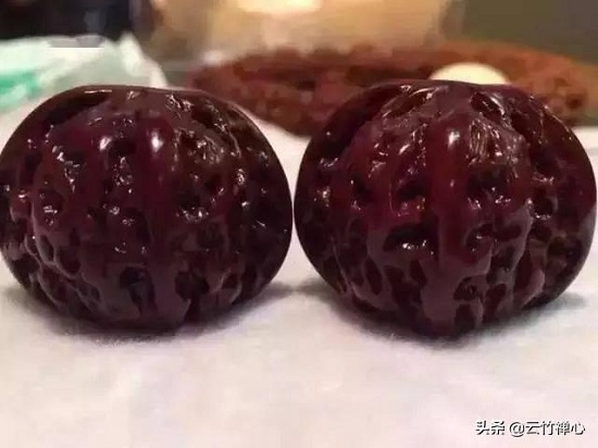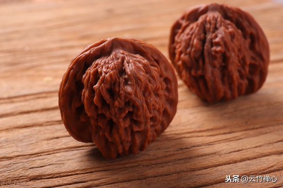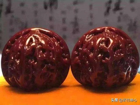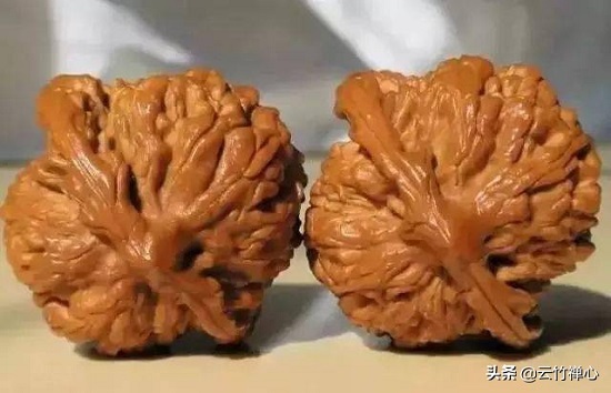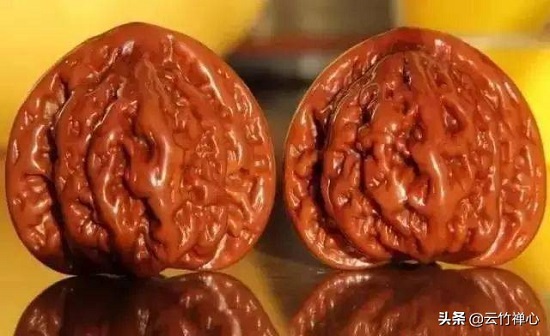 盘了20年的核桃,经过岁月的打磨和沉淀,核桃本身的质地会产生变化。包浆,越来越厚重。这时的核桃,无论从质感到光感,亦或是相互碰撞时,发出的声音都很接近美玉的效果。所以我们形象的称之为玉化。