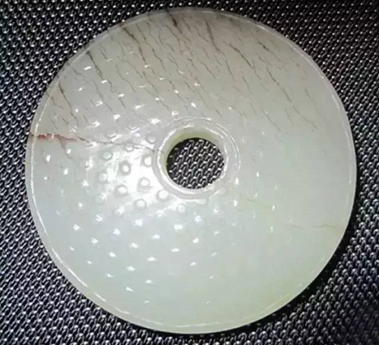 辨认这种造假古玉的话,要看他的铁锈色,叩绣法出来的古玉铁锈色很显新,不入玉器内部,分布也不自然,还有一点几乎是伪仿作旧玉器的通病:玉质生嫩,毫无老熟感。
