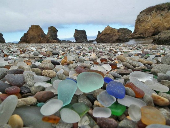 海玻璃是在海滩或大型湖泊边发现的碎玻璃残骸,它们经过水流和砂石的打磨,表面锋利的棱角被磨平,变得非常光滑。海玻璃源于扔进水中的玻璃瓶子或生活垃圾中的玻璃,主要有绿色、透明、棕色以及琥珀色,也有少数淡蓝色、黄色和粉色的。