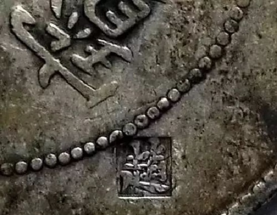 银元硬戳,因用于辨伪钱币鉴定、识别、保真、验银或纪念性质而产生,多由旧时钱庄、银号、商家等加凿而成。相较于墨戳,硬戳还有由发行机构方面付于市场时加盖产生的戳记。如传说的苏区加盖“工”字戳币,典型的有20世纪初流通中国的日本龙洋(龙银),日本当局为防银元回流套换黄金,厂家在币面上打上由圆圈包围的“银”字硬戳,即左银丸、右银丸日本龙洋(丸,日语圆形之意)。另外,由喇嘛寺加盖“里用”等多种钢戳的四川卢比,也是银元硬戳的一种典型性存在。(银元收藏知识:银元鉴别看边齿)