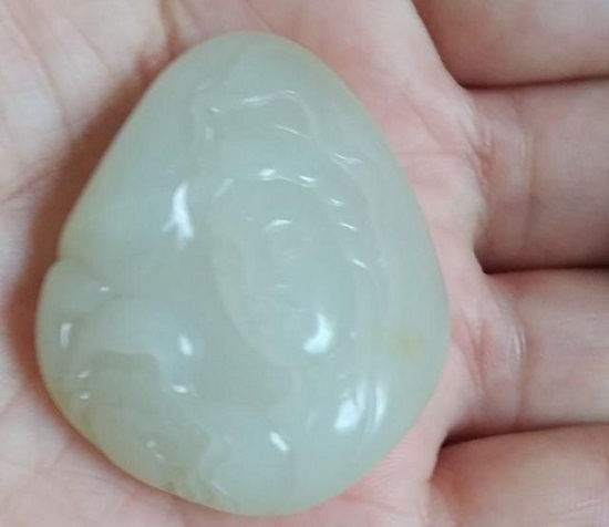 对于和田玉,我们常说的有油性,主要是来自于两方面的感觉,一个是视觉上的油润光泽,一个是手感上的油脂般润滑的感觉。视觉上的油润光泽是和田玉组成物物分子的特殊结构,而使其表面形成了对光的漫反射以及内部对光折射和部分波长的光被吸收的结果。而对于手部的油润感觉,是由于和田玉本身的韧性非常的高,仅次于钻石的韧性,非常的适宜打磨抛光。通过打磨抛光以后,再加上其本身组成物质的特殊性,使得我们盘玩玉器时,感觉犹如抚摸婴儿皮肤或手握一块油脂的感觉一般。