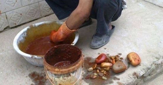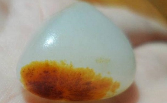 第五种情况,用矿物质通过物理的方法做假皮。这类假皮属于最高档的一种。只会运用到高档的籽料上面。通过利用生成籽料皮色的天然矿物质,在一种特定的配方中缩短了皮子的形时间。这种做假皮的方法,现在很难被区分出来。