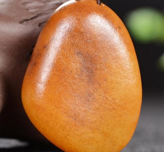 第二,说一下油皮。我们在市场上能够经常的遇到各种颜色的油皮料的。油皮料的产量要比薄皮料的要多,薄皮料的产量是最少的,也是品级最高的籽料。油皮料子一般是产在质地中上的和田玉外皮上的。油皮料的颜色要比薄皮料的要深。同时皮色一般深入到玉肉内的一到两毫米。这一种和田玉籽料由于其料子比较容易产生油脂感,而且皮色是由于微沁生成,视觉感比较突出,因而得名。我们都知道一块和田玉,如果它本身的玉质好,结构细腻,组成物质的颗粒细小那么她就容易产生油脂感,因而形成油皮料的籽料质量都比较高。因此,这一料子都非常的受到人们的喜爱。对于油皮料,我们从表面很容易的,就能感受到颜色深入到玉质内部有一定的深度。