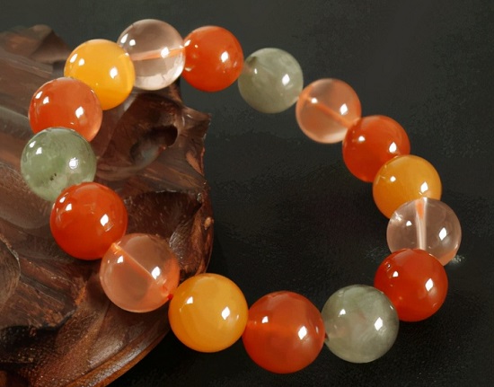 2、福禄寿中的红发晶:红发晶内含钢状金红石,细密的发丝柔柔缠绵,又称红兔毛水晶;或针状金红石。 开发下三轮(改善泌尿、肠胃、肝脏),强化海底轮 , 调血养身,有助于妇女病调理内分泌系统,增进血液循环和新陈代谢,使气色更好,皮肤更细致柔软。代表着生命力,能使佩戴者保持充沛的活力和青春,增强自信和力量,消除消极情绪,同时还能化解事非。