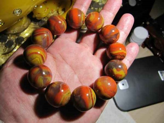 战国红玛瑙:在战国时代,战国红玛瑙器物主要发现于我国北方地区,并在先秦时代达到顶峰,其多用于饰物、剑柄、珠串、环佩。现代以来战国红首先发现于北票地区,以产地命名可叫“北票红缟玛瑙”。之所以在民间叫做战国红,是因战国时期出土文物中,有一些饰物和北票红缟玛瑙非常近似,民间因此把此种玛瑙叫为战国红。