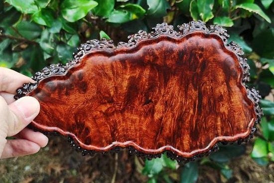 看到这个名字,那肯定是紫檀对不对?并不是的,大果紫檀,虽然名字是紫檀,但是在属性里属于紫檀属花梨木,也就是说,大果紫檀是花梨木而并非紫檀木,其实在文玩圈,有很多木种都是名字叫紫檀,属却是花梨木,我们称其为紫属花梨木。