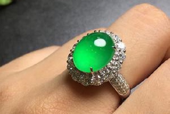 翡翠戒指和翡翠手镯一样,都是翡翠中价值偏高但依然深受人们喜爱和追捧的饰品,别看小小翡翠戒指蛋面那么小,但它一般都是取自整块料子中最精华的部分,不是种水极佳,就是满绿飘花。将其戴在手指间,特别能凸显出佩戴者的高贵气质。