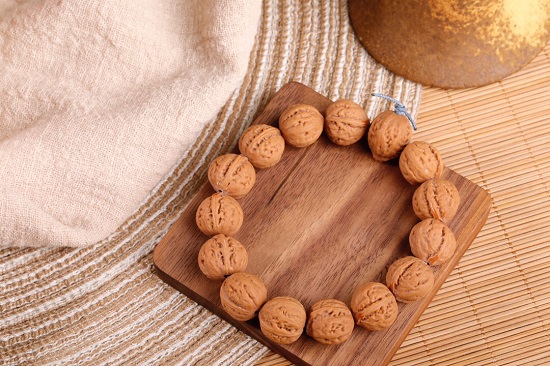 小核桃手串本身就有很多油性,但如果长期不玩,随着时间的变化,本身的油性会逐渐变少。因此在长期不把玩的情况下可以少量涂抹一点宝宝油,加强它的油质,先把纳米刷上滴上几滴宝宝油,不需太多,然后均匀涂抹到表面及纹路,最后用棉布或者纸巾把纹路较深地方的积油擦净。有的小新核桃可能会出现花点,这时不需要担心,在平时把玩过程中会随着包浆慢慢消失。