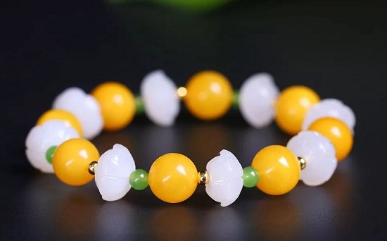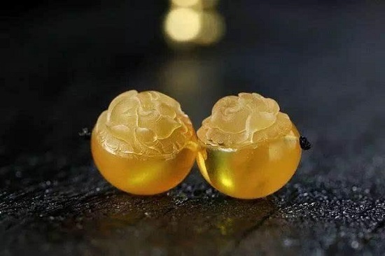 十一、南瓜珠,它外形也是和南瓜一样,扁圆状,有南瓜瓣,而且要保证每一瓣都均匀饱满,造型精致的话,十分考量工艺水平,制作成本较高,比较难得。